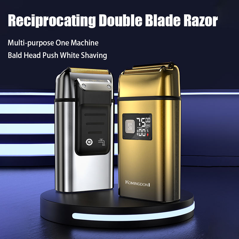 Afeitadora eléctrica Komingdon — recortadora de barba y rostro recargable de lámina, 2 en 1, reciprocante, portátil para viaje, máquina de afeitar para hombre