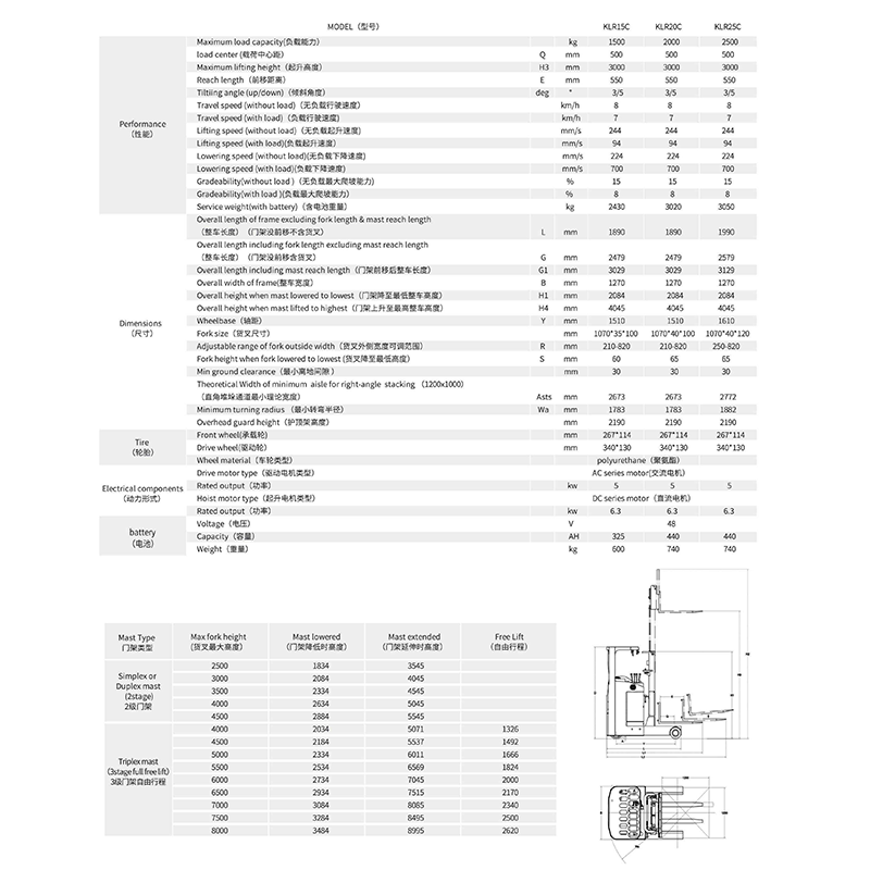 Apilador Eléctrico de Largo Alcance, Mástil de 6m, Carretilla Elevadora Eléctrica para Almacenes de Pasillos Estrechos