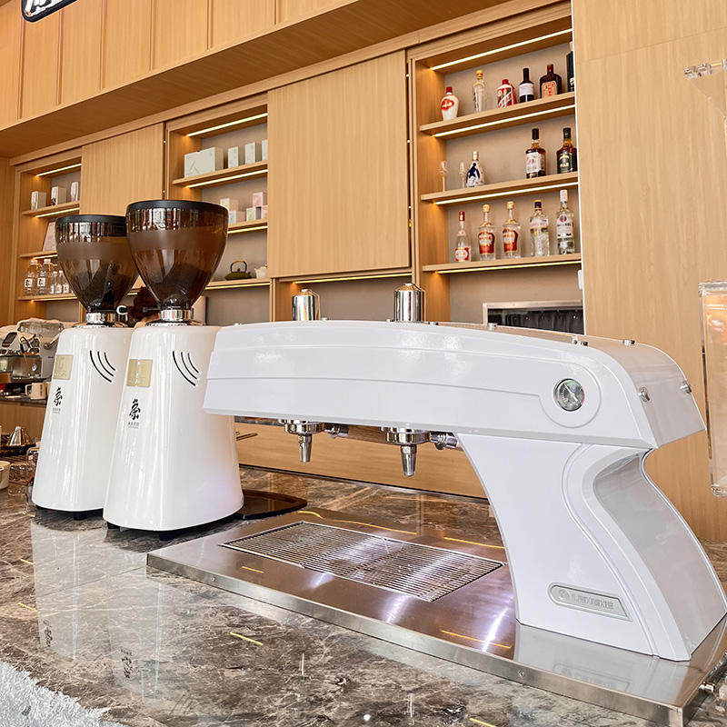 Máquina de Té Espresso Eléctrica Semiautomática Comercial con Sistema de Agua Caliente, Pantalla Táctil, Acero Inoxidable, Doble Grupo, 9 Bares de Presión