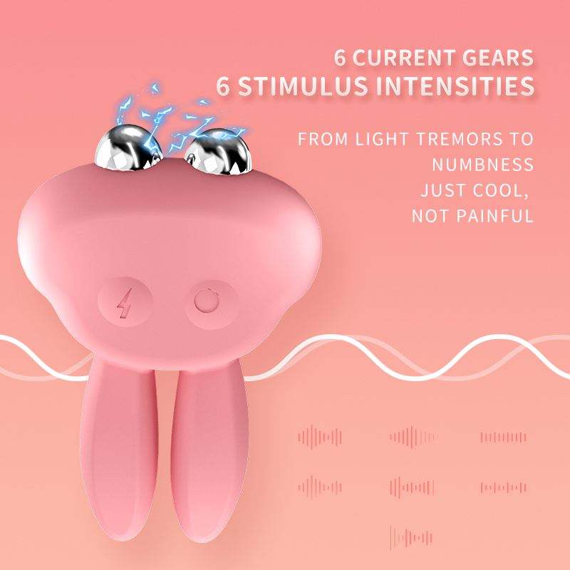 Vibrador de Conejo con Electroestimulación, Potente Estimulación del Clítoris, Vagina y Pezones, Material de Silicona y ABS, Color Rosa, para Mujeres