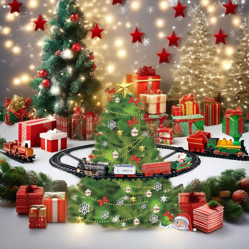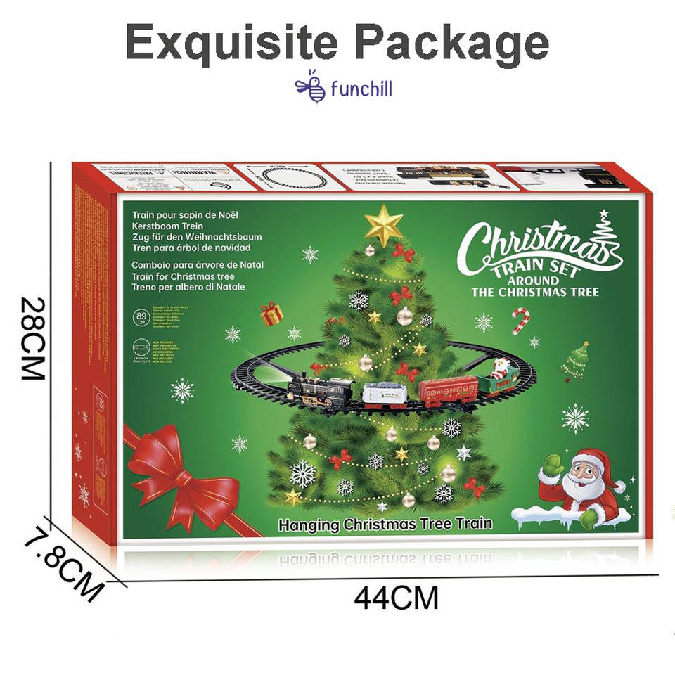 Simulación eléctrica tren sonido Stan Claus montar pista ranura juguete Musical Navidad canción Musical tren colgante