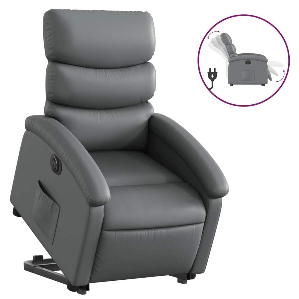 Silla reclinable eléctrica de pie en piel sintética gris para muebles de dormitorio