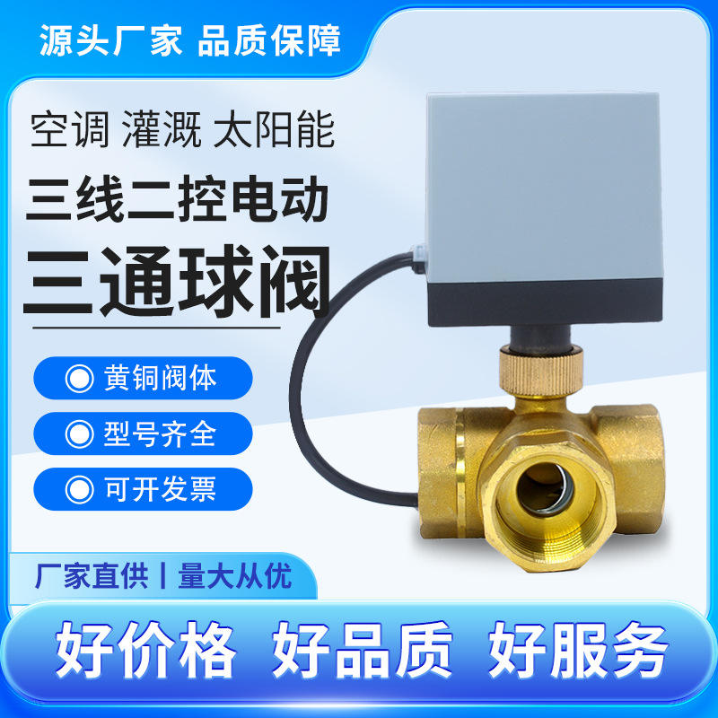 Válvula de Bola Eléctrica de Tres Vías para Unidad de Ventilador de Aire Acondicionado Central, Cuerpo de Latón, Rosca Interna Tipo L, Válvula de Tres Líneas