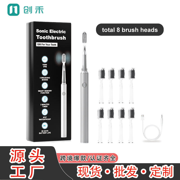 Cepillo de Dientes Eléctrico Sónico Recargable, Resistente al Agua IPX7, Plateado, 8 Cabezales de Cepillo, Carga Tipo C, 50 Días de Duración de la Batería