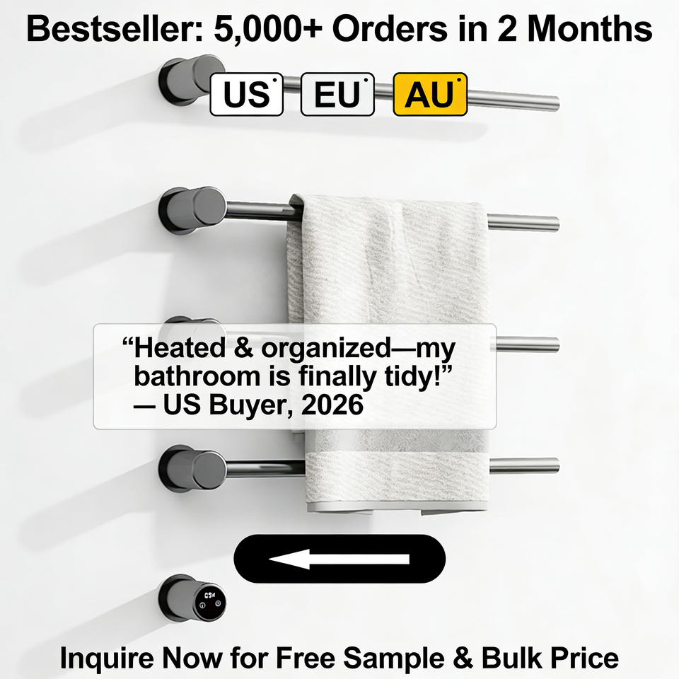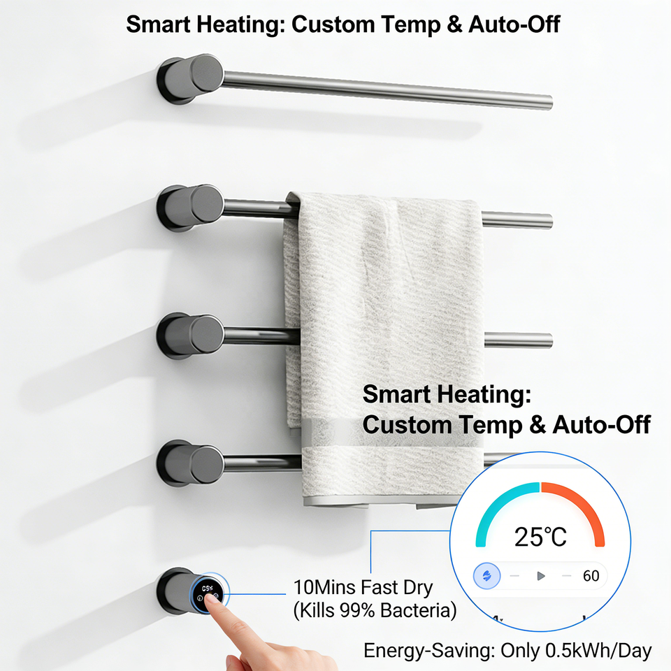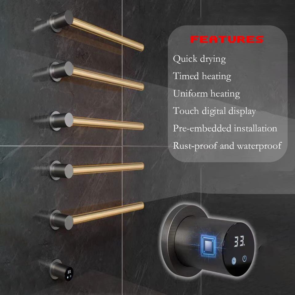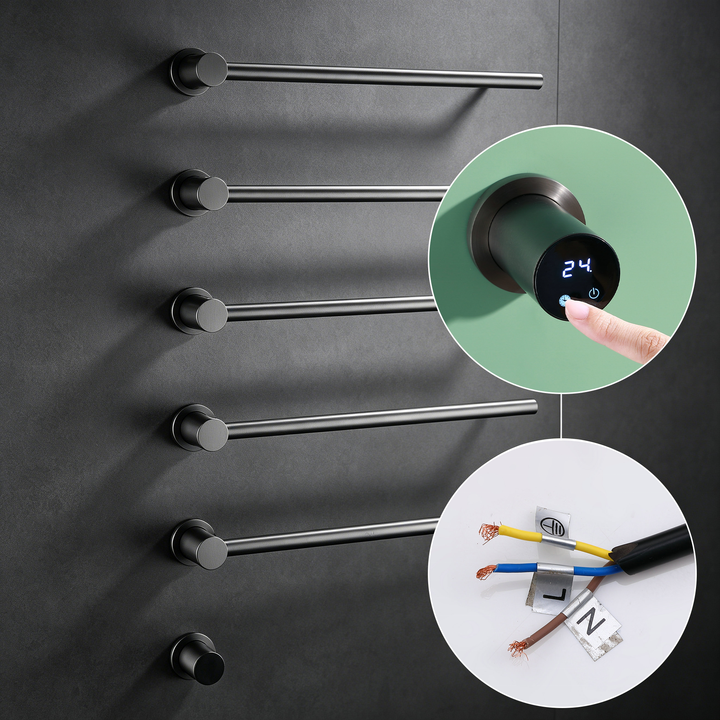 Toallero Eléctrico Calefactado de Pared, de Acero Inoxidable, con Pantalla Táctil LED Digital, Personalizable, para Baño de Hotel