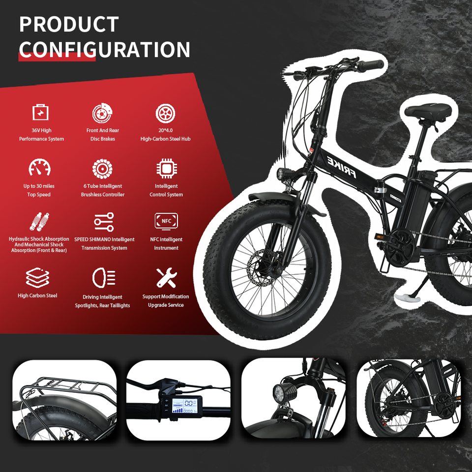 Bicicleta Eléctrica Plegable con Llantas Gruesas de 20 Pulgadas, Bicicleta Eléctrica de Montaña con Batería de Litio, Motor en el Buje Trasero, 7 Velocidades, Cuadro de Acero al Carbono, Llantas de 20x4 Pulgadas