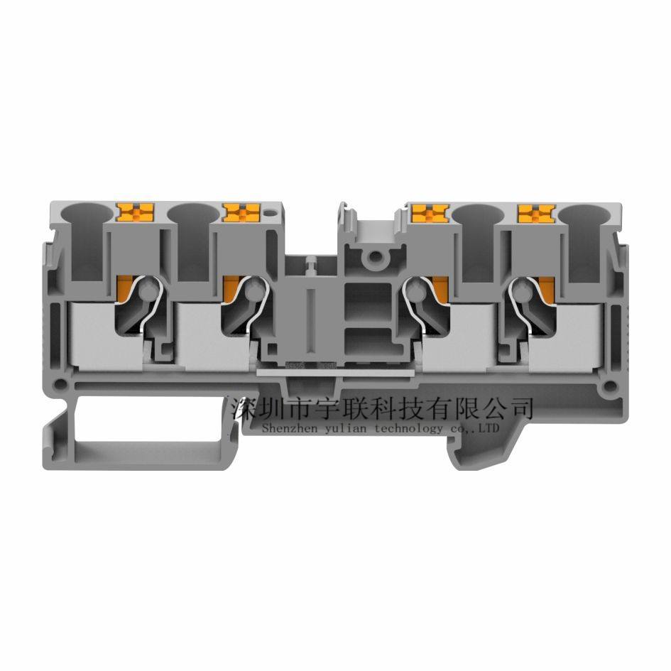 Terminal Eléctrico de Resorte, Conectores de Bloque de Riel de 4 Posiciones y 2 Capas, Aleación de Aluminio, Latón Plateado, 300V, Yulian CE/ROHS ISO GUS