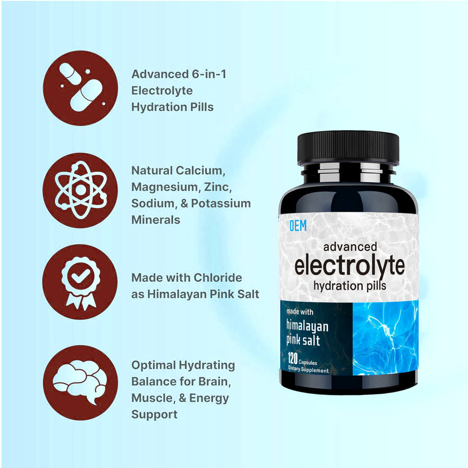 Complejo Electrolítico Avanzado para Hidratación (120 Cápsulas) 8 Electrolitos Hidratantes Vitaminas Sin Gluten Sin OMG Vegetariano Adulto