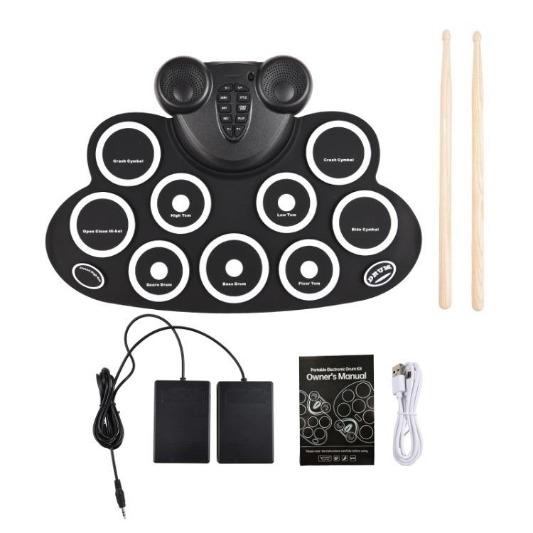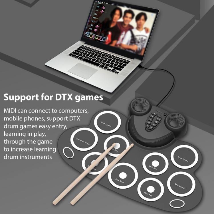Batería Electrónica Portátil con Baquetas, Pedal, 9 Pads, Altavoz Dual, Recargable, Compatible con MIDI y Juegos