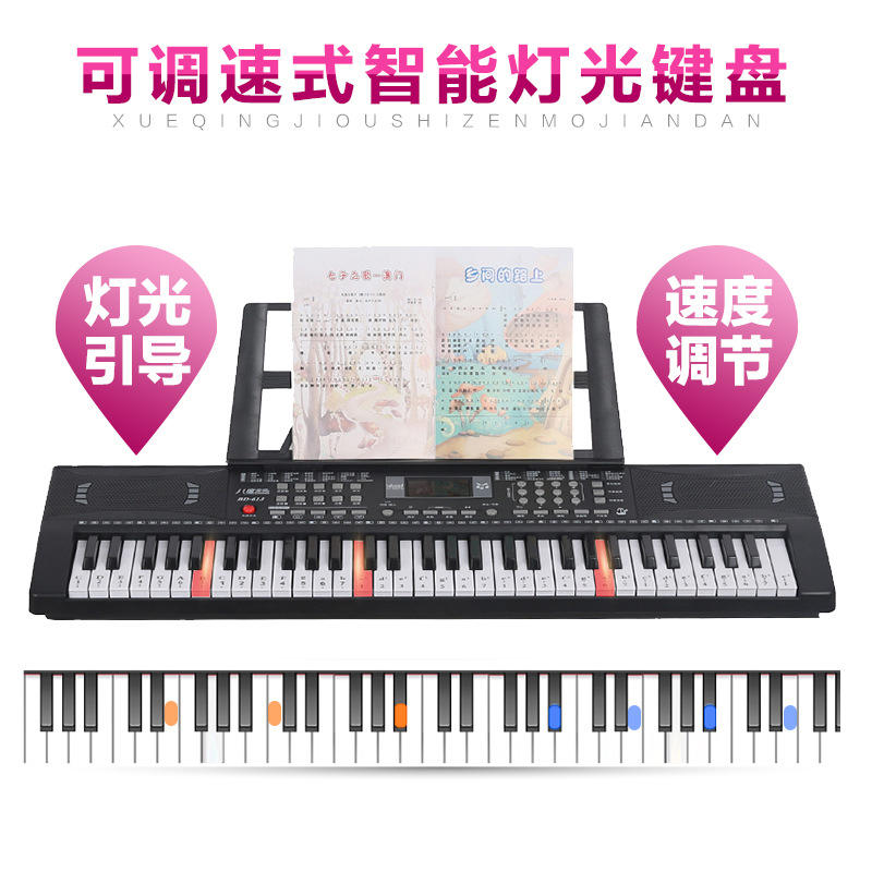Teclado Electrónico de 61 Teclas Rosa, Piano de Juguete Musical para Niños, para Aprender Música, con Soporte y Porta Partituras