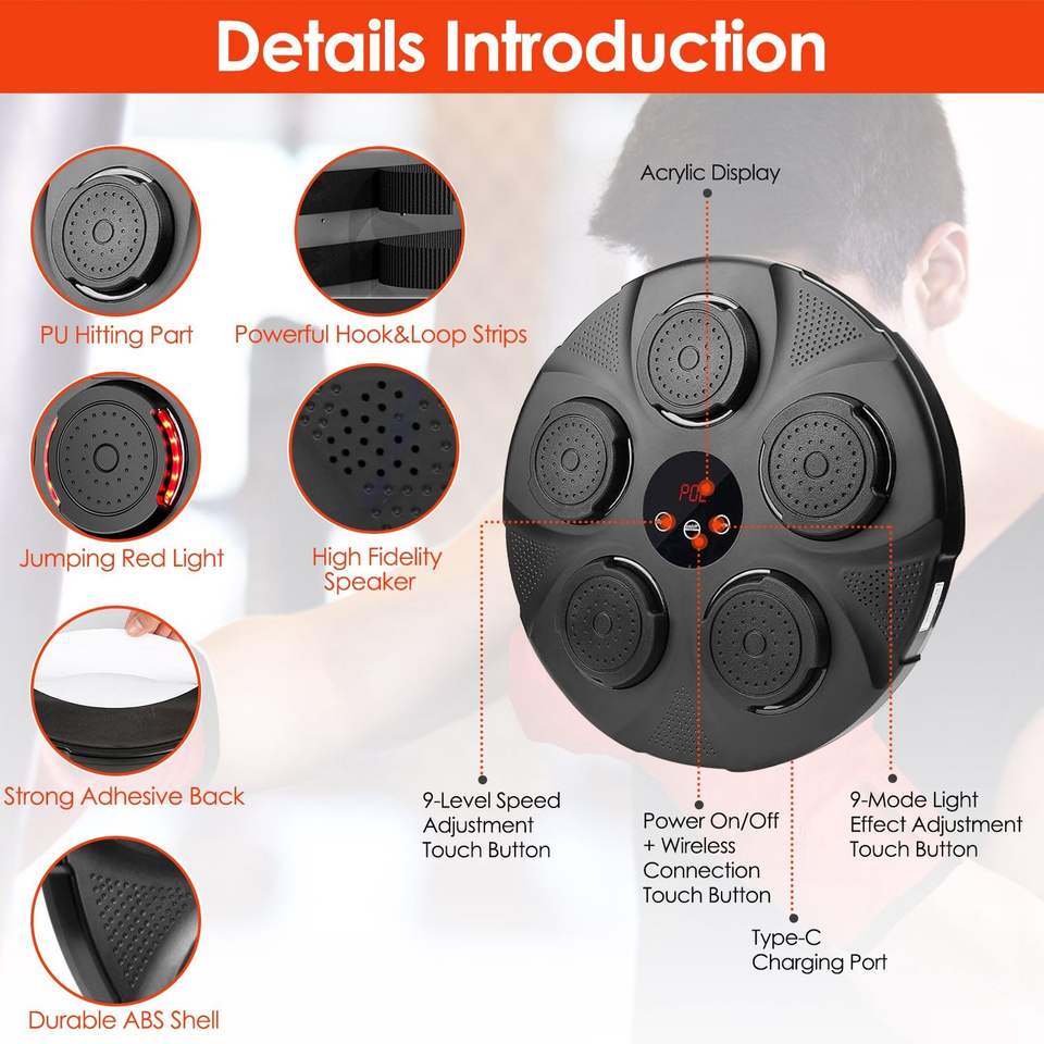 Máquina de Entrenamiento de Boxeo con Saco de Arena Iluminado con LED, Almohadilla de Golpeo de Pared con Música, Equipo de Ejercicio
