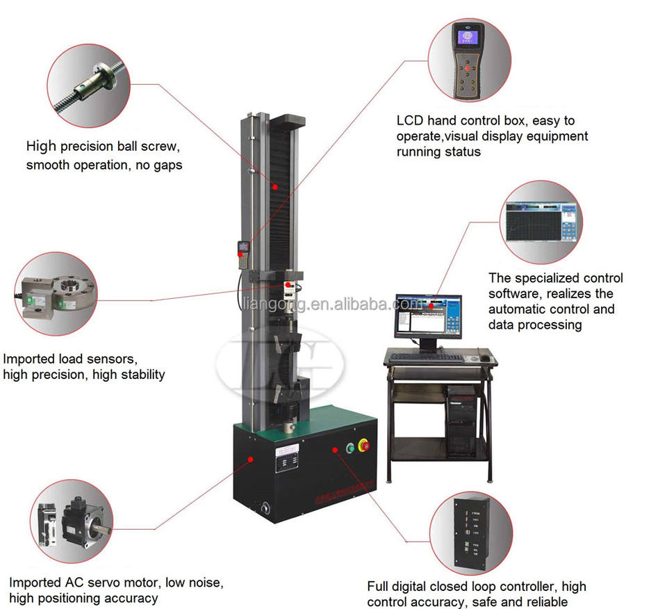 Máquina Electrónica de Ensayo de Tracción, Máquina de Ensayo de Fuerza de Rotura de Caucho de 2kN