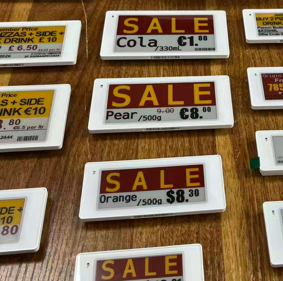 Etiqueta Electrónica para Estantes de 2.9 Pulgadas, Paquete de 150 Unidades, Pantalla de Tinta Electrónica de 4 Colores, Sistema ESL para Frutas, Supermercados, Etiquetas Digitales de Precio