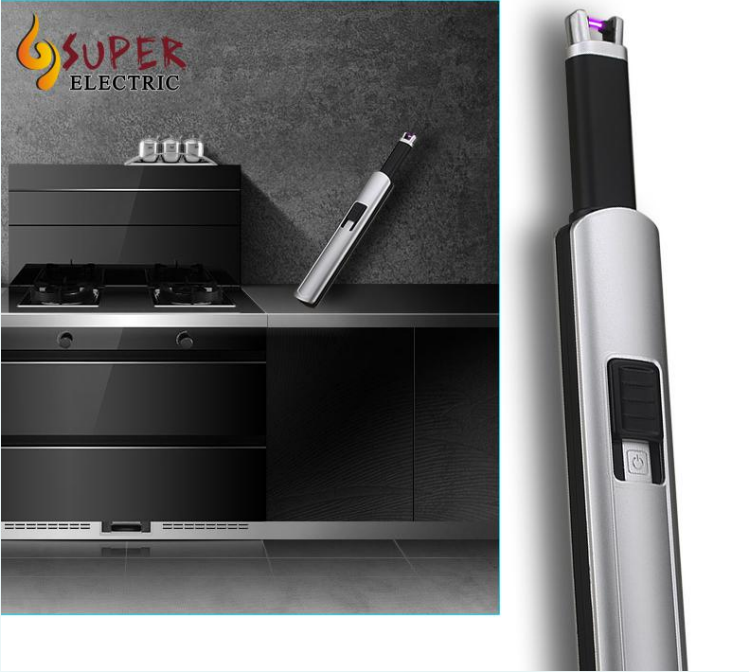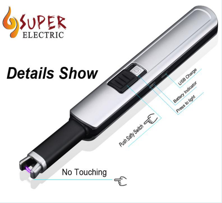Encendedor Electrónico USB Recargable, Encendedor de Cigarrillos a Prueba de Viento, 280mAh, Encendedor para Barbacoa con Indicador de Batería e Interruptor de Seguridad