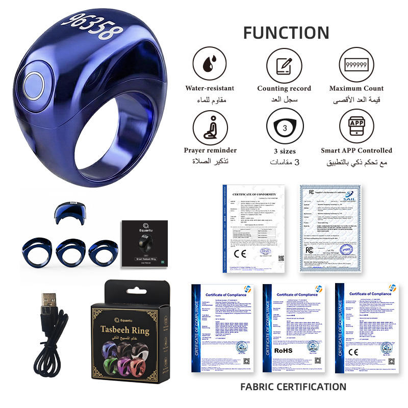 Anillo inteligente Zikr con contador Electrónica Design Equantu, regalo musulmán, Qibla Tasbih, contador Zikr, reloj despertador LED Azan.