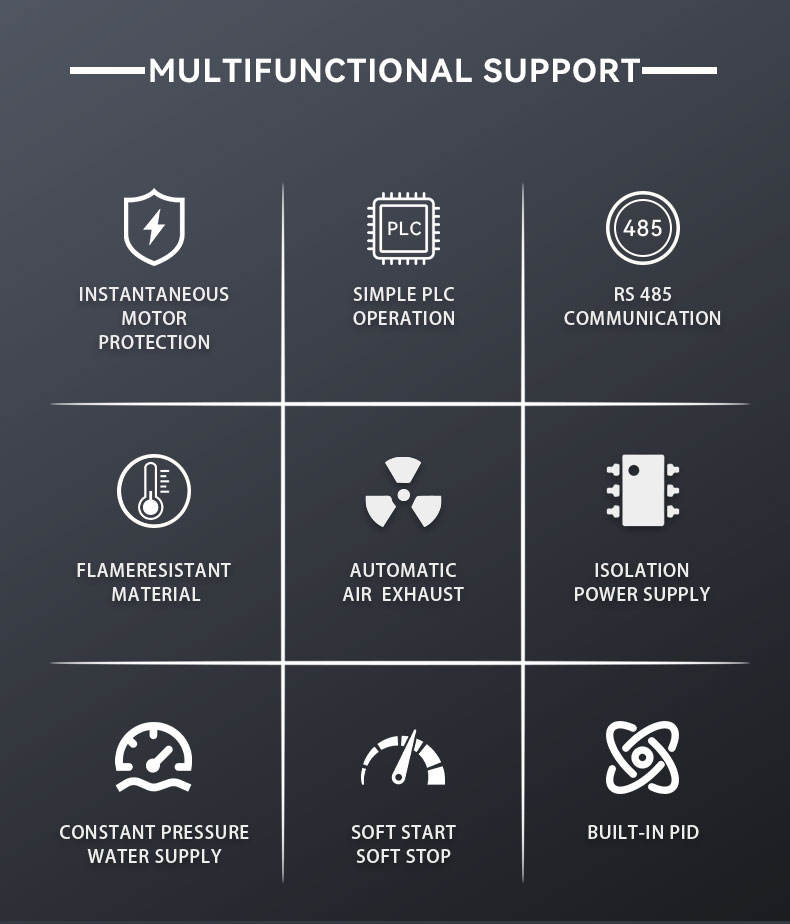 FVC, Control de circuito cerrado, Control de torque, Control de circuito abierto, Control PWM, Control de compensación de deslizamiento, Control V/F, Control de vectores sin sensores, Control de par directo, Control PID, Control vectorial