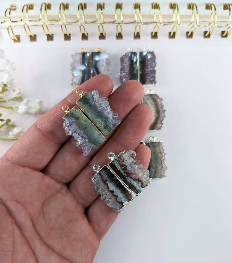 Nombre del producto:Electroplated Amethyst Slice Pair