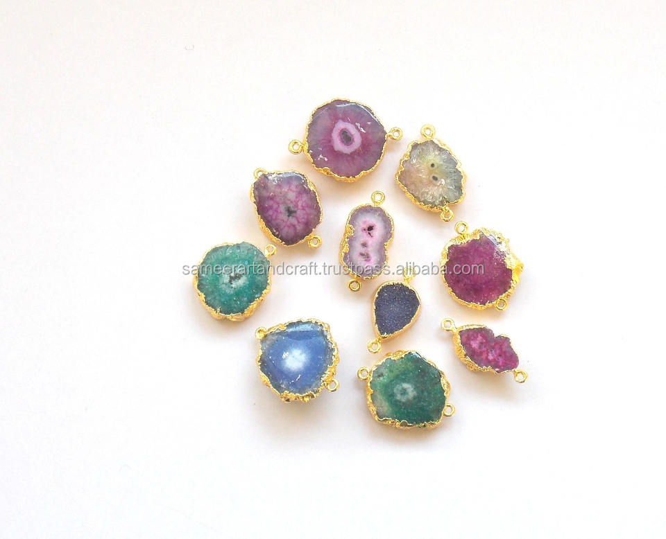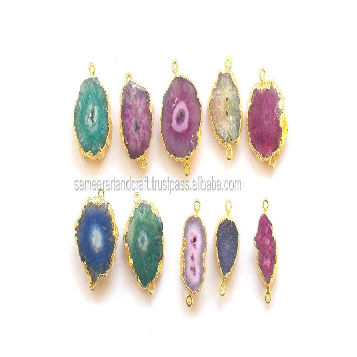 Conector Doble para Joyería, Chapado en Oro de 18K, Hecho a Mano, Cuarzo Solar Natural, Estilo Boho, Gema de Piedra Natal, Material de Latón