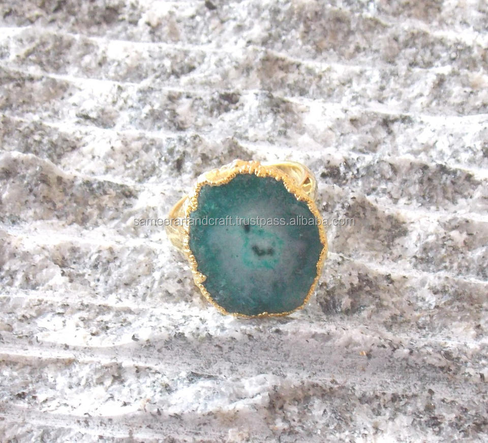 Anillo de ágata con ajuste de bisel chapado en oro galvanizado para boda y fiesta