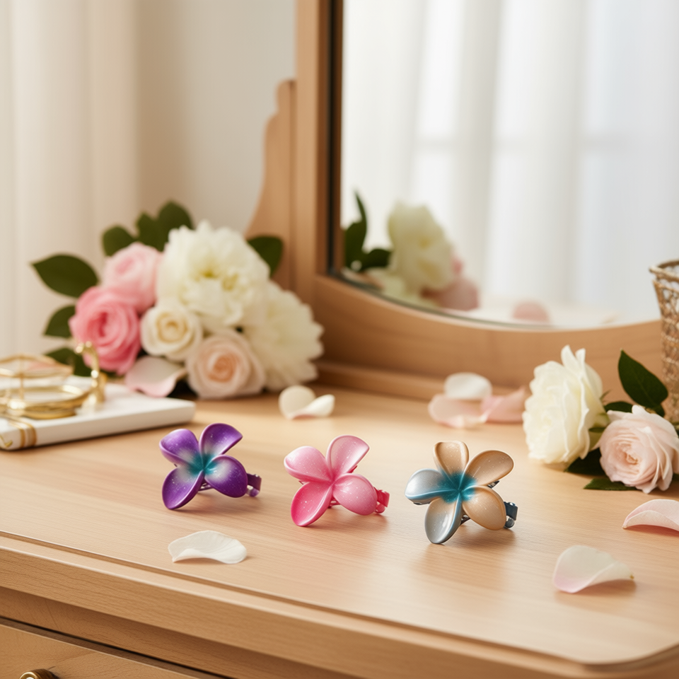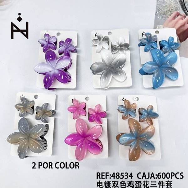 Juego de Tres Pinzas para el Cabello con Diseño de Frangipani en Dos Tonos Electrochapados, 2 por Color