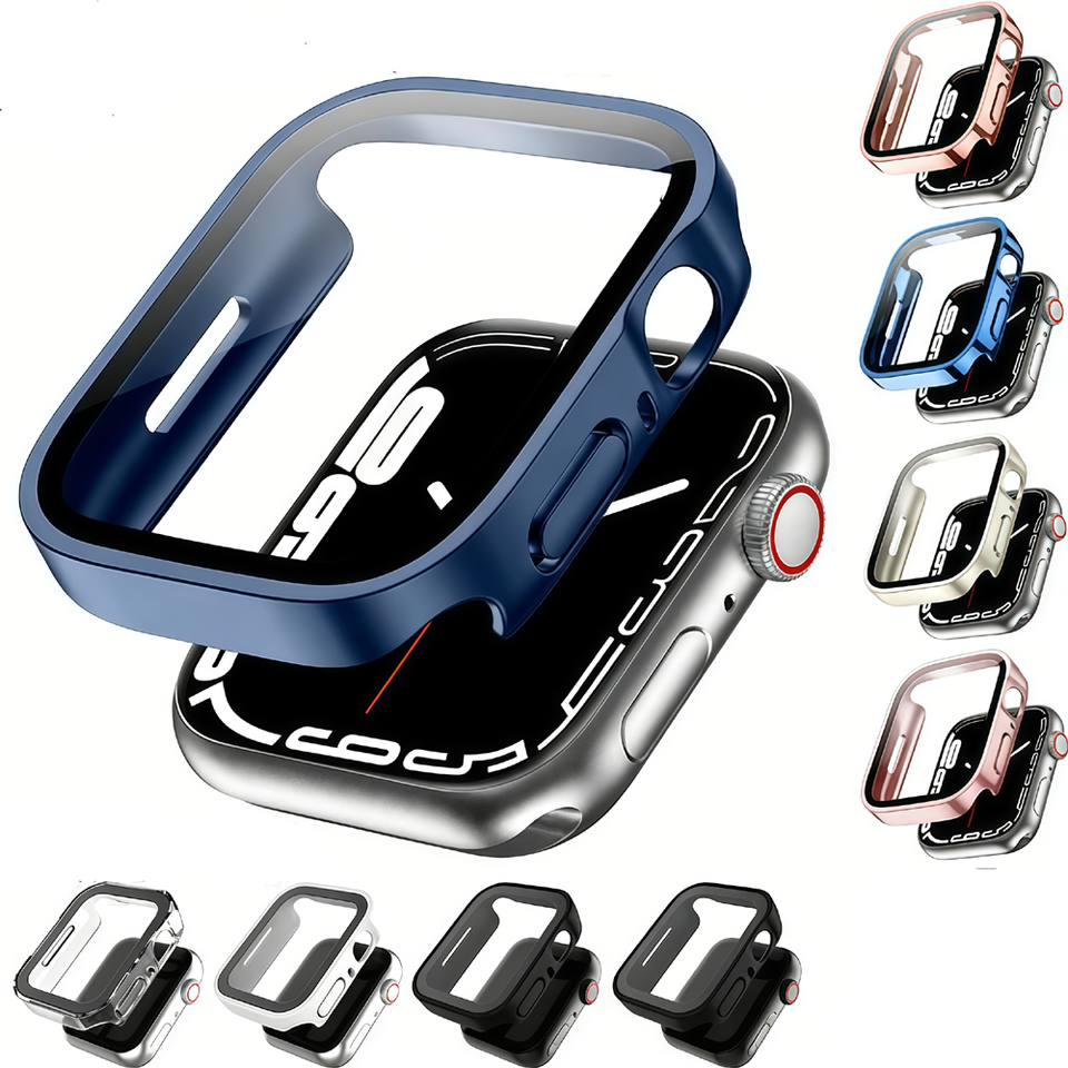 Funda Protectora Completa Antiarañazos de PC Rígido con Electrochapado para IWatch 40mm/44mm/41mm/45mm con Protector de Pantalla de Vidrio Templado