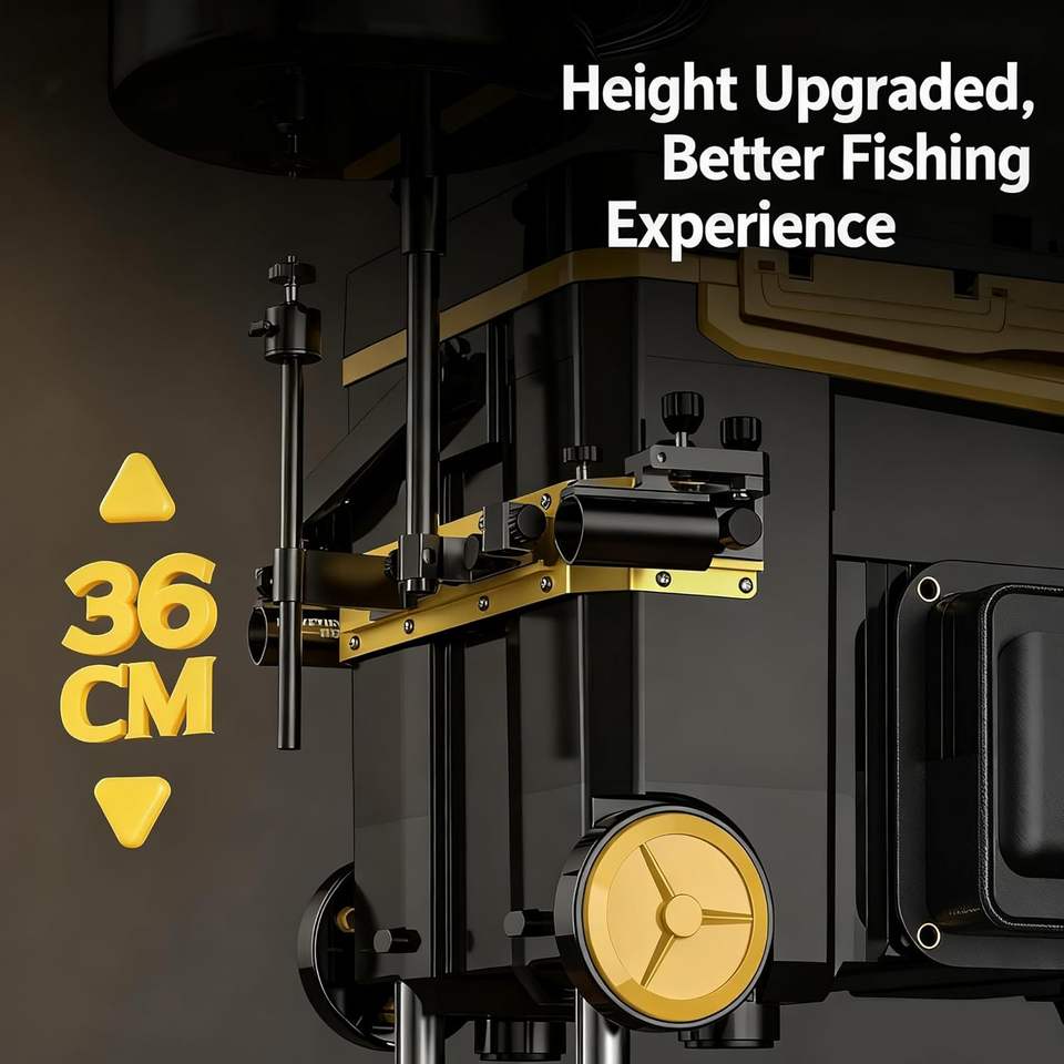 Conjunto de Silla de Pesca Portátil Elecviva para Exteriores, Asiento de Pesca Negro, Caja de Pesca, Soporte para Cañas, Plástico de Polietileno, No Resistente al Agua
