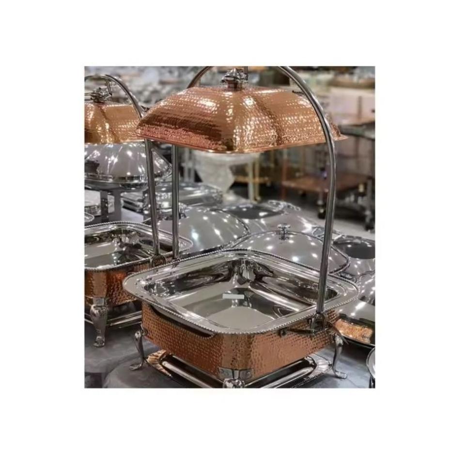 Elegance Square Food Server Chaffing Dish Hecho de cobre martillado de acero inoxidable con tapa superior para suministros de hotel