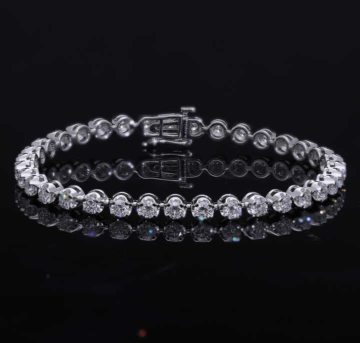 Elegante pulsera de tenis de diamante CVD cultivado en laboratorio de oro de 14 quilates para mujer, clásico, 5,25 quilates, corte redondo, ajuste de diamante, regalo de joyería fina