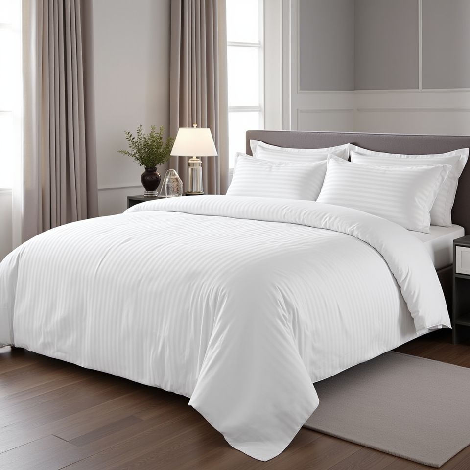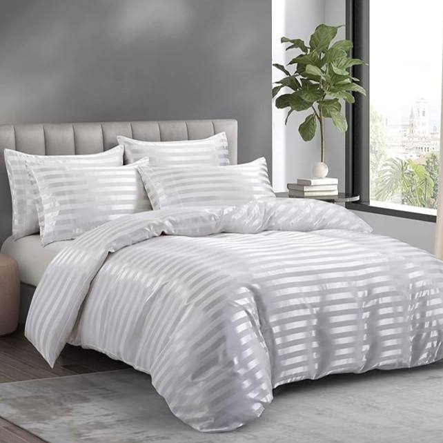 Elegante funda nórdica de polialgodón de 180X220 cm Relajante con rayas anchas de satén Durable Easy Care"