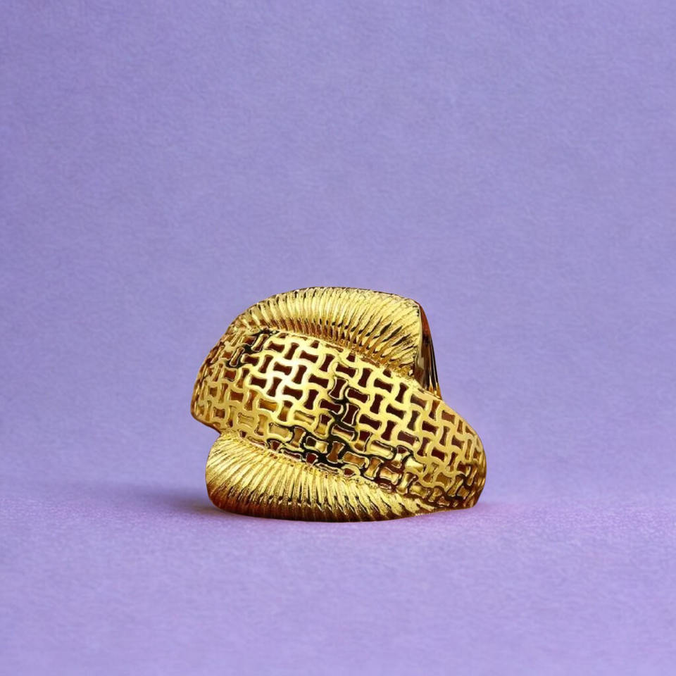 Elegante Anillo de Malla Texturizada de Oro de 22k con Filigrana Pulida, Joyería de Declaración para Mujer, Anillo de Cóctel de Lujo y Atrevido, a la Moda