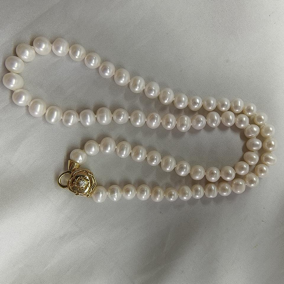 Elegante Collar de Perlas de Agua Dulce de 7-8 mm, Casi Perfectas, Sin Núcleo, de 50 cm, Sueltas, con Cierre de Camelia de Doble Cara