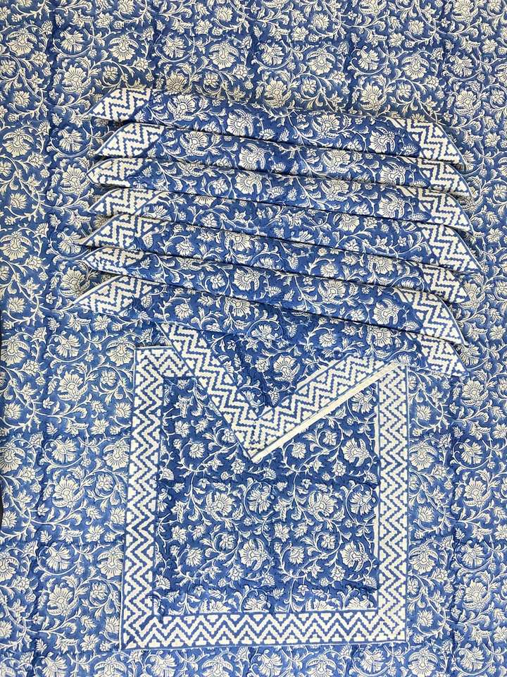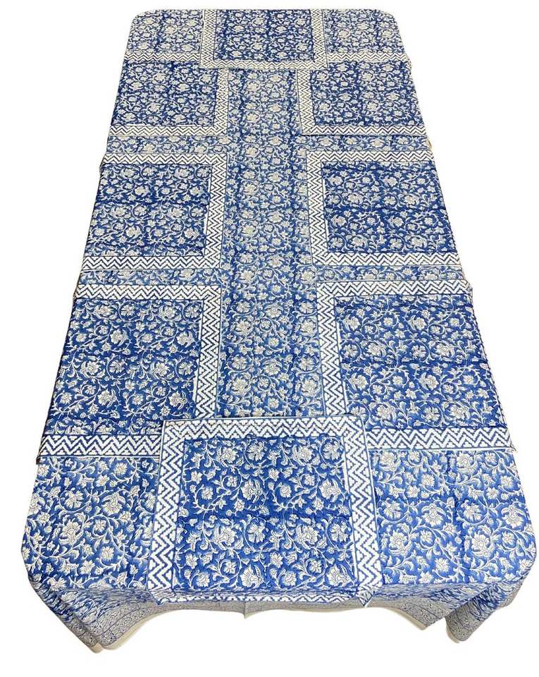 Elegante mantel floral cuadrado de 8 plazas hecho a mano juego de servilletas de algodón indio estampado de bloques de lujo inspirado en Jaipur Color personalizado