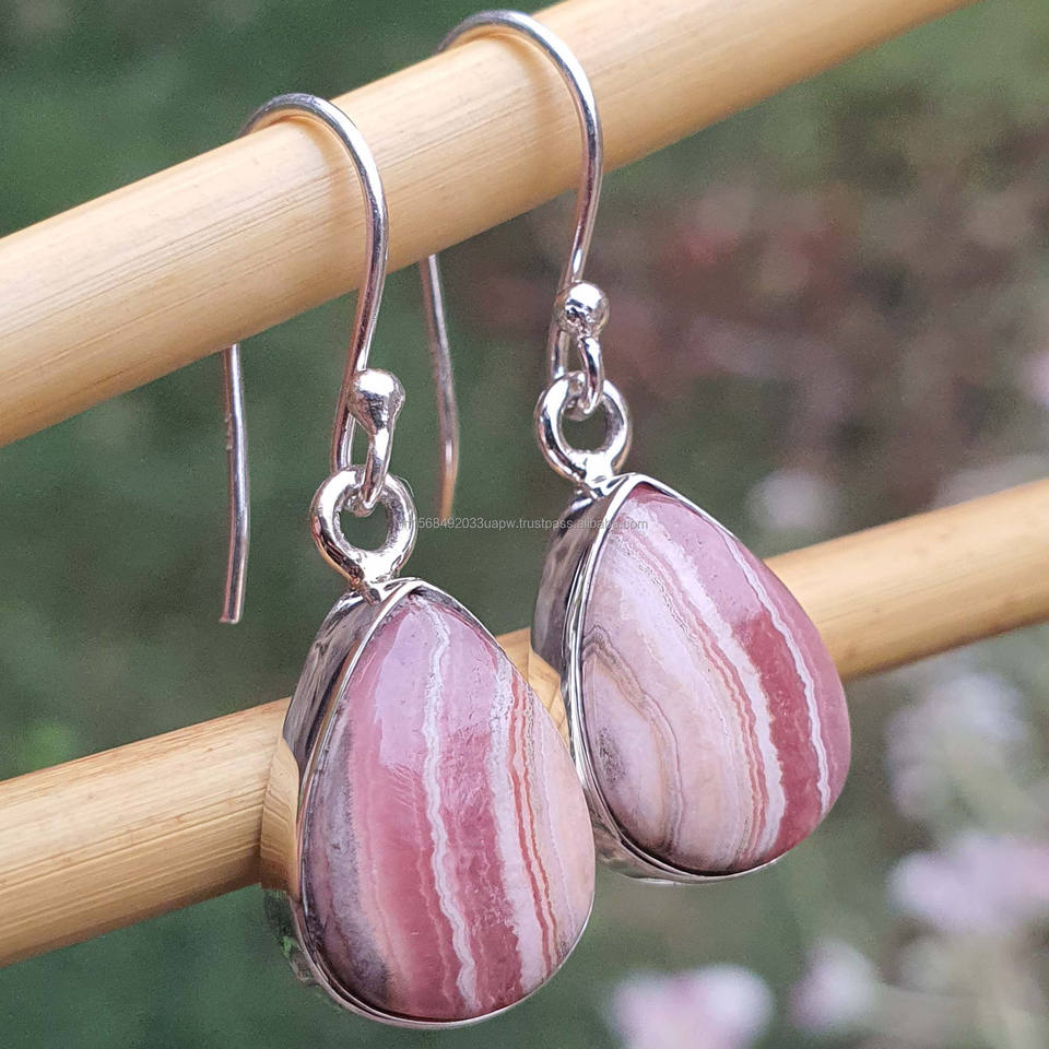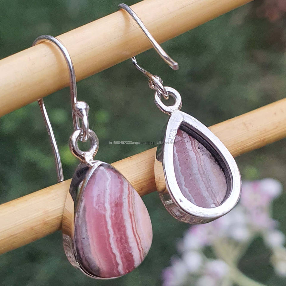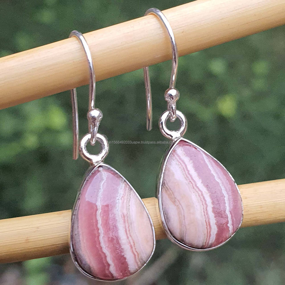 Product Name:Natural Rhodochrosite 925 Sterling Silver Dangle Drop Earrings
