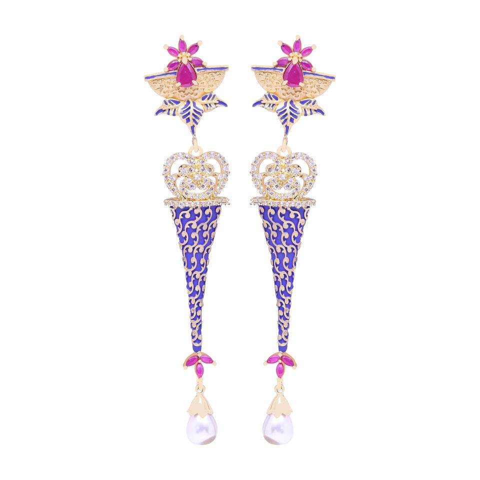 Matte Gold Plated AD Stone Dangle EarringsTipo de pendientes