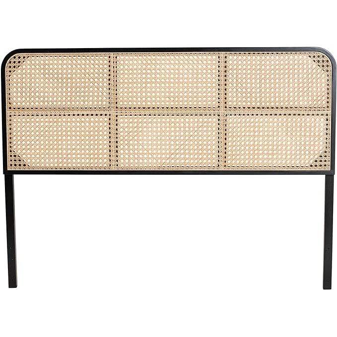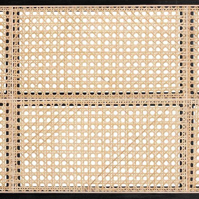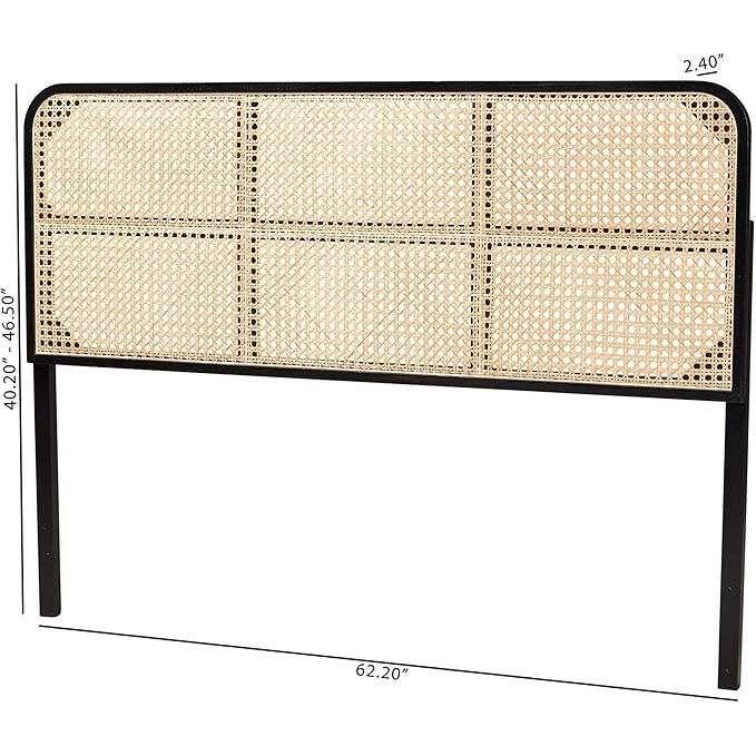 Elegante Cabecero de Reina Boho Chic con Diseño de Ratán Tejido a Mano Acabado en Negro Origen de Vietnam Muebles de Dormitorio de DreamCraft