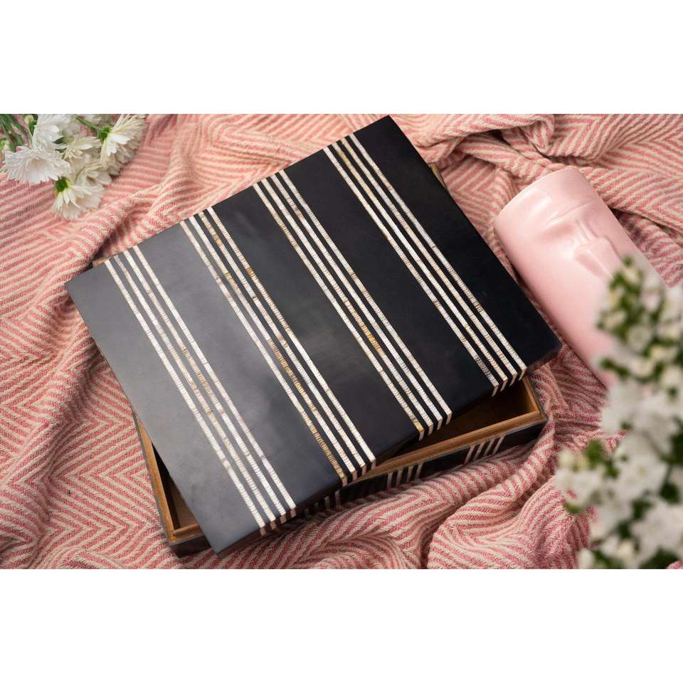 Elegante Caja de Joyería Moderna de Lujo con Incrustaciones de Hueso y Grabados para Sala de Estar