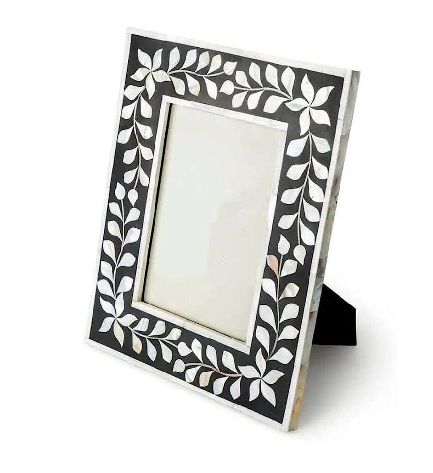 Elegante Marco de Fotos con Incrustaciones de Hueso, Pieza de Arte Hecha a Mano, Marco de Fotos Moderno con Incrustaciones de Hueso para Decoración Contemporánea