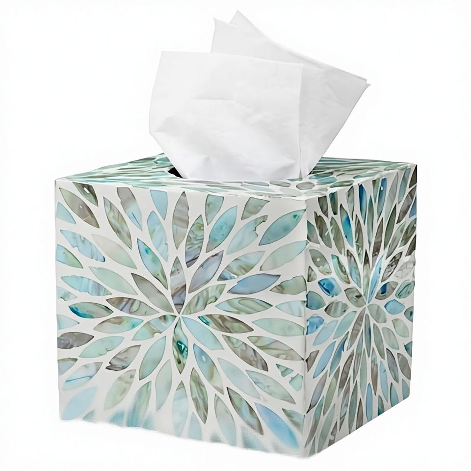 Elegante Caja de Pañuelos de Resina con Incrustaciones de Hueso Craft Valley, Detalle Hecho a Mano, Color y Logotipo Personalizables, Decoración de Hogar de Lujo y Duradera para un Estilo Moderno