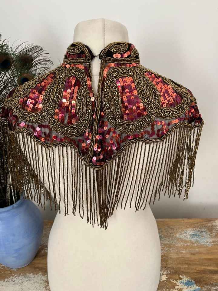 Elegante capa burlesca Hermoso bordado Hebras de cuentas Lentejuelas para ocasiones festivas con perlas Sujetadores naturales