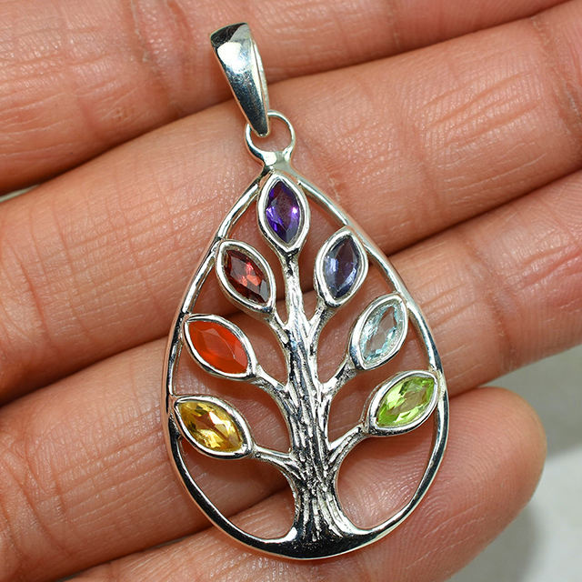 Colgante de plata de ley 925 con bisel en forma de Chakra, joyería fina con piedras múltiples, para la India