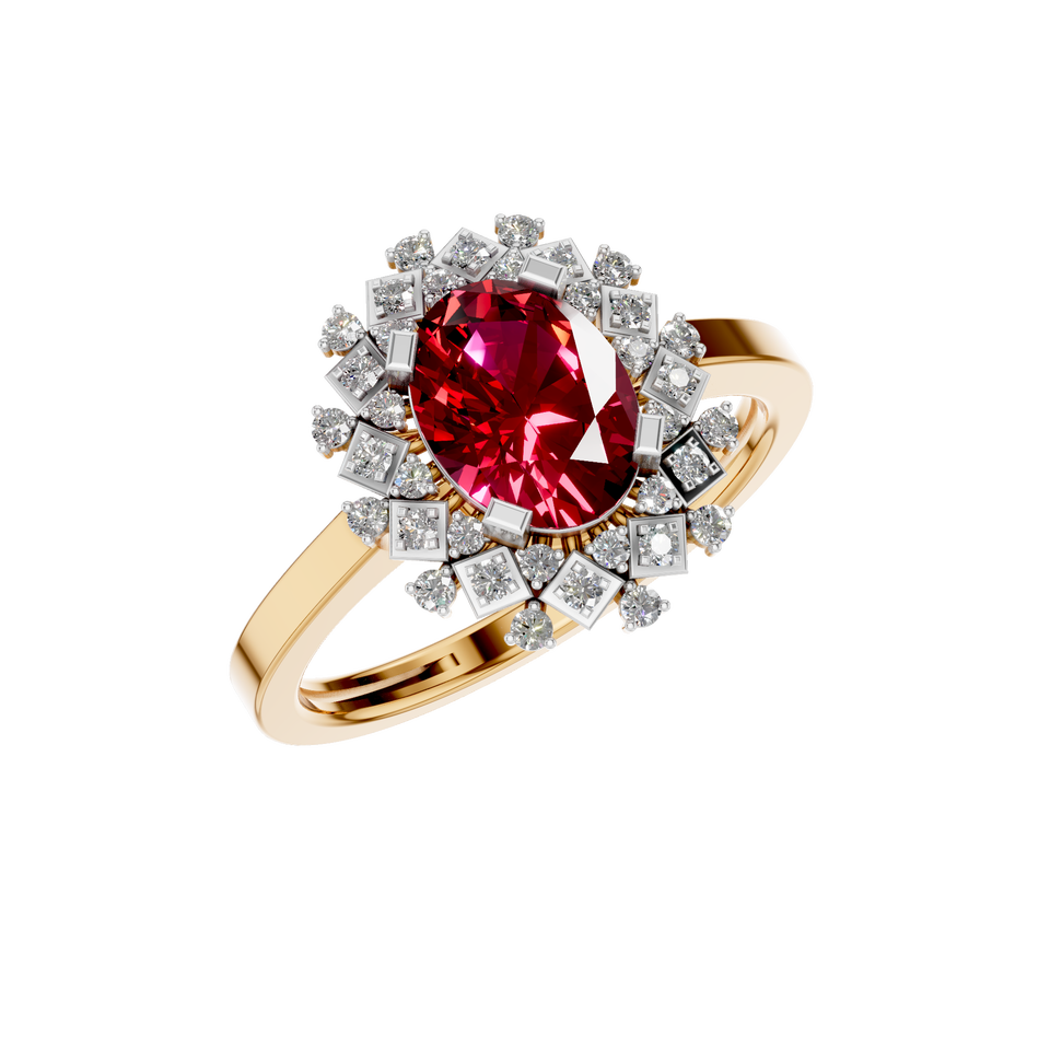 Style:Vintage Natural Red Ruby Gemstone Ring with Diamond Halo