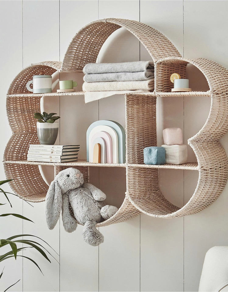 Estante de Pared de Ratán Natural Tejido a Mano con Forma de Nube Elegante, Almacenamiento Decorativo para Cuarto de Niños y Niñas, Dulce y Encantador