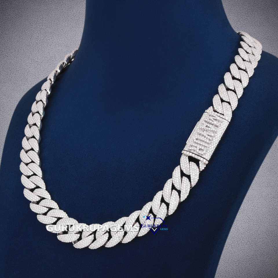 Elegante cadena de eslabones cubanos en plata de ley 925 con diamantes hechos en laboratorio Iced Out Hip Hop Diseño personalizado Nombre Lock Collares