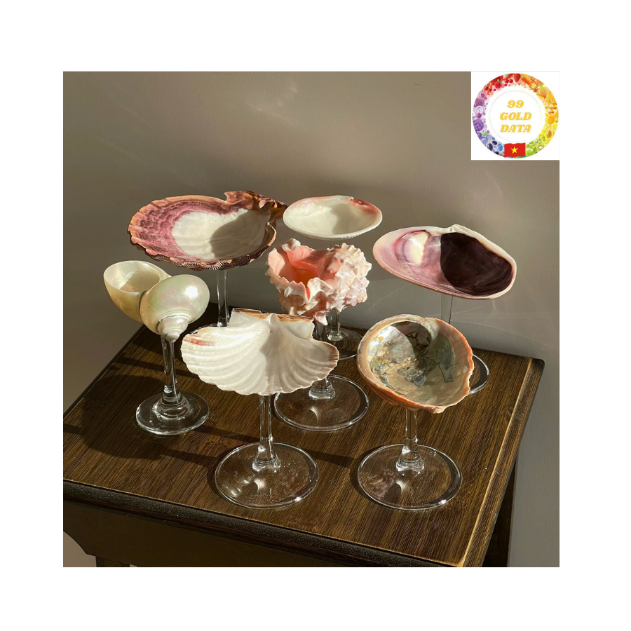Copa de vino de concha marina con nombre personalizado elegante para boda de destino y presentación de bar de cócteles costeros