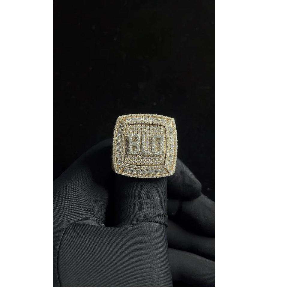 Elegante Anillo de Campeonato Personalizable con Diamantes de Plata de Ley 925, Joyería Moderna de Parte Superior Plana para Uso Formal e Informal