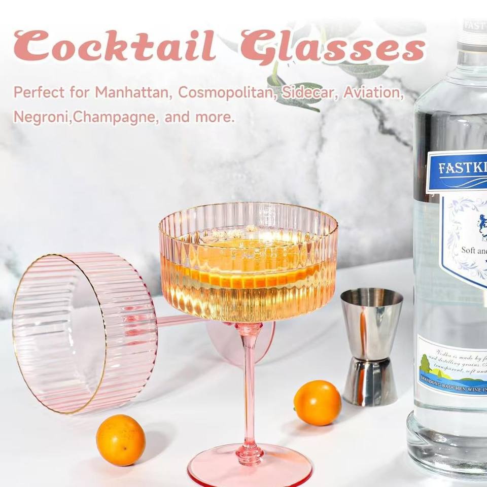 Elegante diseño clásico Vintage 300ML acanalado plástico Coupe gafas de cóctel para el hogar y la fiesta