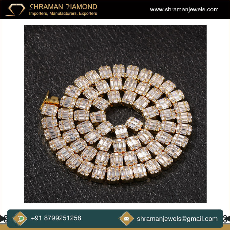 8mm helado Baguette y cadena de diamante redondoTipo de cadena