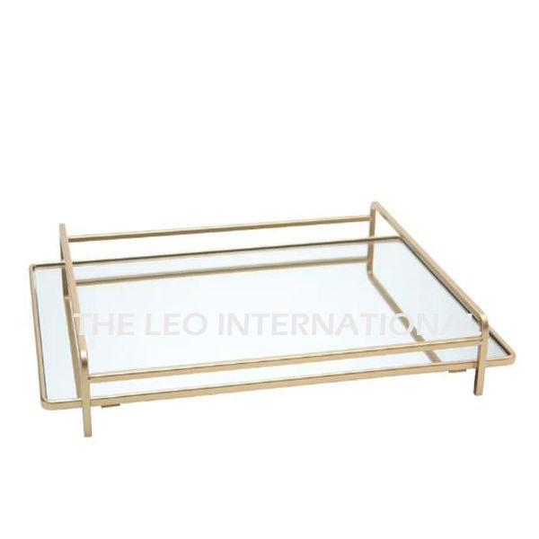 Bandeja de Espejo de Diseño Elegante con Borde de Diseño Único con Toque Dorado para Decoración de Mesa de Lujo, Bandeja Creativa