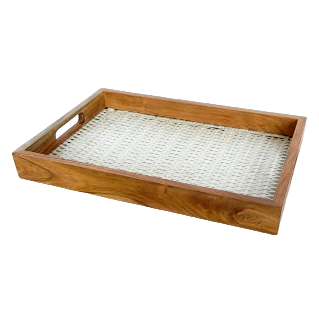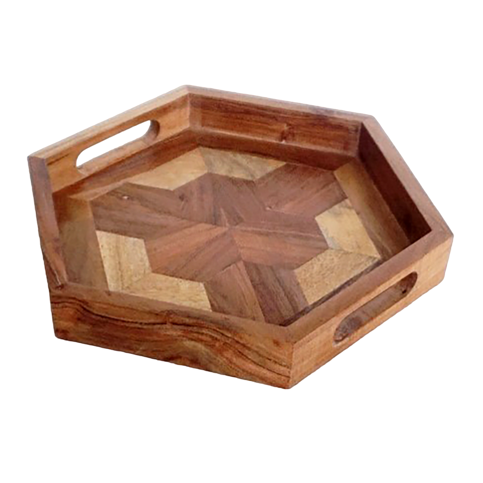 Bandeja de forma rectangular de madera maciza de diseño elegante con bandeja de servicio de madera de trabajo neto de proveedor indio a precio barato