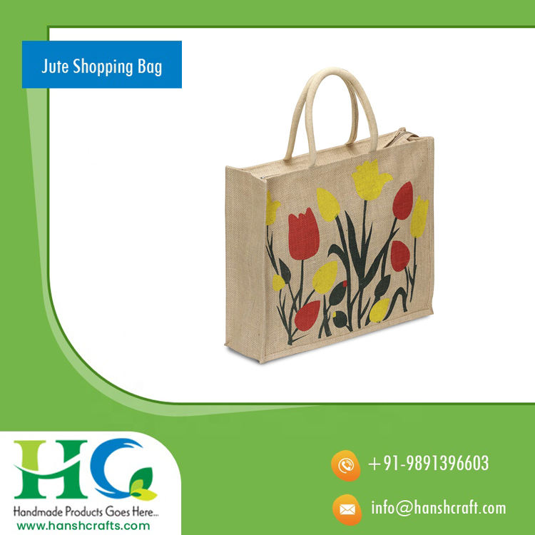 Bolsas de yute hechas a mano multiusos de diseñador elegante Bolsa de yute impresa de calidad superior con cremallera para compras Mercado indio